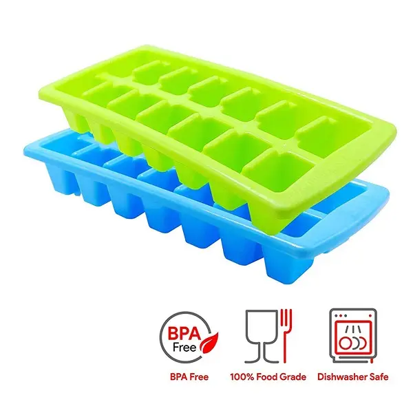14 Cubes Plastic Unbreakable Virgin Plastic Ice Cube Tray (Set of 2,Multi)