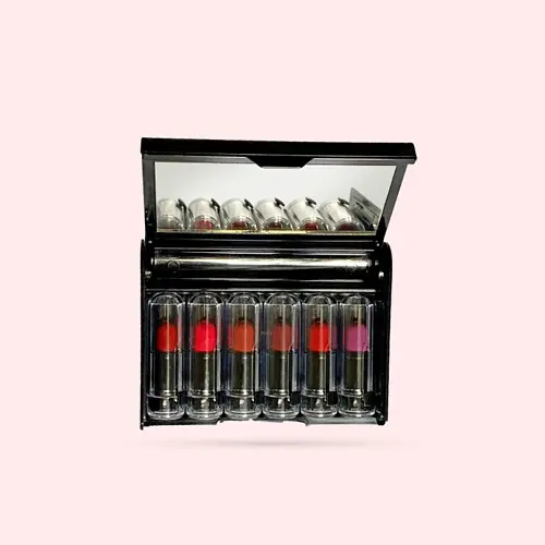 - Comes with 6 multicolor lipsticks and an attached mirror
