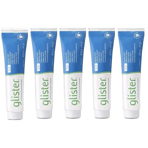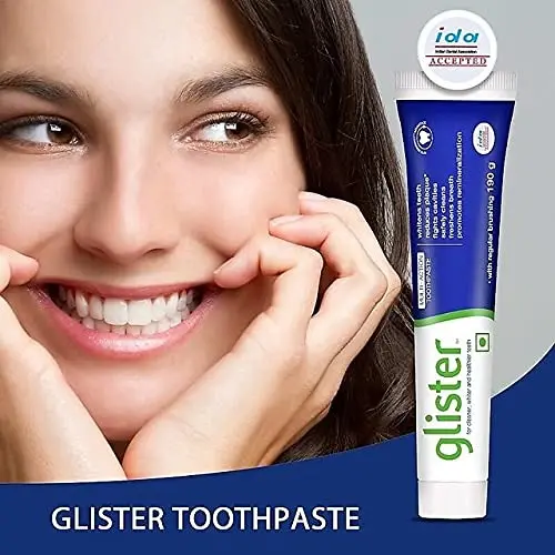 Glister Toothpaste for Cleaner, Whiter and Healthier teeth. Multi-Action Toothpaste Whitens teeth Fights Cavities Removes Plaque Freshens Breath Promotes. All with regular brushing, Great for the whole family