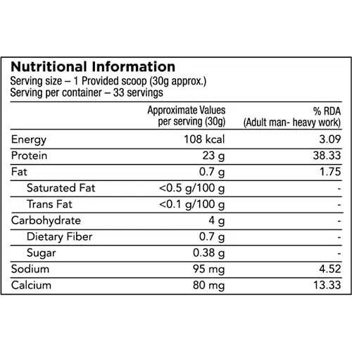 Recommended Dosage: 1 provided scoop (30 g approx.) of protein powder up to 2 times daily*.