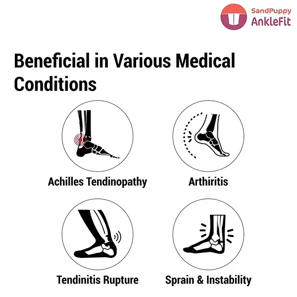 ? FASTER RECOVERY – AnkleFit provides support & compression to the ankle making it very useful during the injury recovery. It is very helpful during certain medical conditions such as achilles tendinopathy, arthritis, tendinitis rupture, fracture, sprain, instability & general pain
