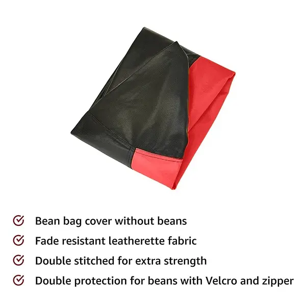 Faux Leather Xxxl Faux Leather Bean Bag Cover Without Beans (Red And Black), 124 Cm