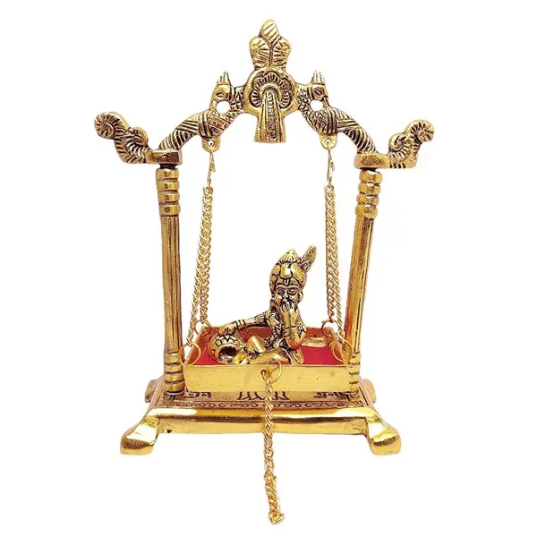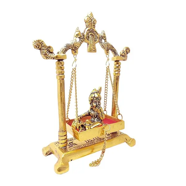 ? Laddu Gopal swing jhulla Playing Statue carved metal by artist and specially technique with golden color accents to give a look without sacrificing the details