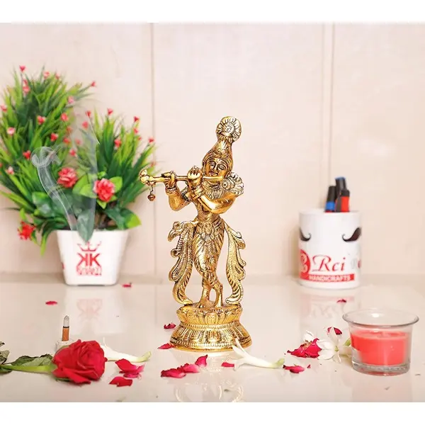 Lord Krishna Metal Statue, Krishna Murti Playing Flute for Temple Pooja, Decor Your Home