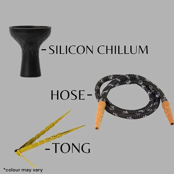 Old Monk 800 Gram Hookah Shisha Pot (Clear) 8.5 inch Glass Hookah With Silicon Chillum, Hose & Tong