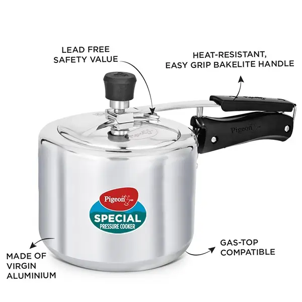 Pigeon by Stovekraft 3 Litre Special Aluminium Inner Lid Non-Induction base Pressure Cooker (Silver) BIS Certified