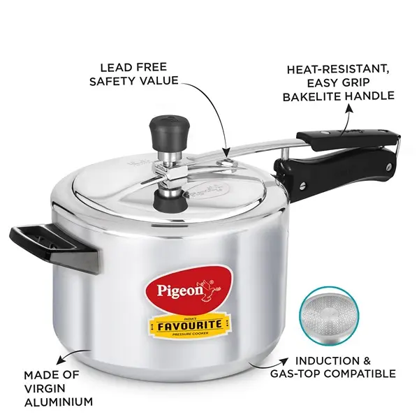 Pigeon Favourite Aluminium Pressure Cooker with Inner Lid, 5 Litres, Silver