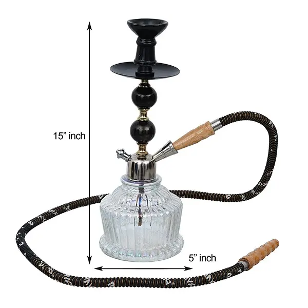 ? Dimensions(H x W x D): 15 x 5 x 5 Inches, Package contains: 1 QT Glass,Iron Hookah Set ( 15 Inch, Black)