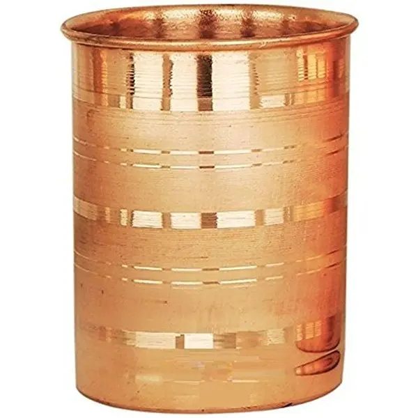 - Glass : Capacity :- 350 Ml, Material :- Pure Copper, Design Pattern :- Silver touch, Weight :- 80-100 Grams, Colour :- Copper- Brown