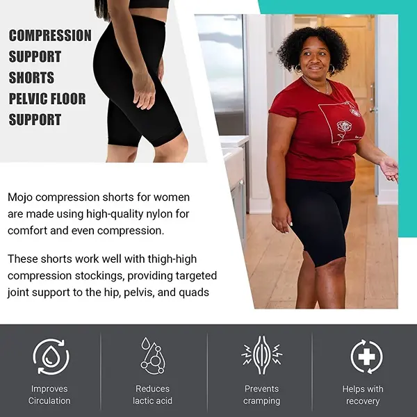 ? COMPRESSION SHORTS for WOMENS work well in conjunction with thigh high compression stockings providing targeted joint support to the hip, pelvis and quads. Refer to size chart for ideal sizing.