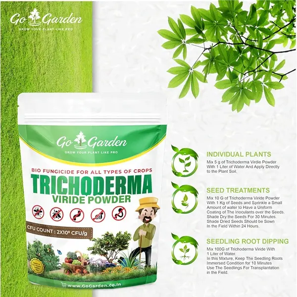 ? APPLICATION: INDIVIDUAL PLANTS – Mix 5g of Trichoderma viridi with 1 liter water and apply directly to plant soil. SEED TREATMENT – Mix 10 g of Trichoderma viride with 1 kg of seeds. ROOT DIPPING: Mix 100 g of Trichoderma viridi with 10 liters of water. POTTING SOIL: Mix 100 g of Trichoderma viride with 15-20 of potting soil