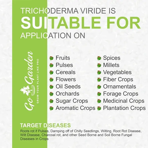 ? IMPROVES PLANTS IMMUNITY: Trichoderma viridi activates the plant’s internal defense system. Hence prevent and control root rot, cataplexy, blight, wilt, verticillium wilt, anthrax, and other soil-borne diseases.