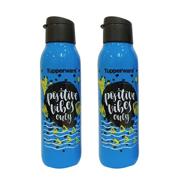 Tupperware Cool n Chic Plastic Bottle, 750 ml, Set of 2, Blue & Black