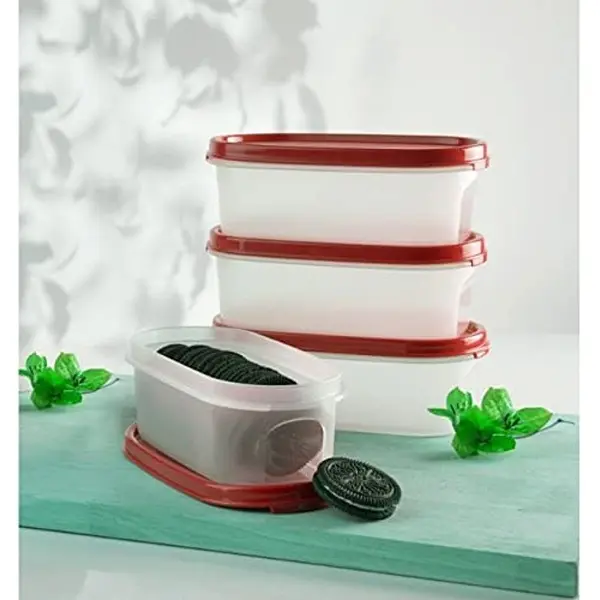 A super-organized and efficient kitchen is an asset to any household. With Tupperware?s storage solutions, you can easily make your kitchen running smoothly and efficiently. The containers you pick out for your kitchen will determine how smartly you organize it. Choose the best with Tupperware?s Oval Containers for dry storage. These airtight containers can be used to store all your pulses, lentils and other dry staples. They can also be used for keeping snacks and namkeens fresh and crisp. Transparent windows let you see the contents inside, so you won?t have to search your cupboard for the right container. The specially designed oval shape minimizes shelf space used. Modular, ergonomic design allows you to easily stack the containers on top of one another. Save on precious space and save on precious time with these practical containers!