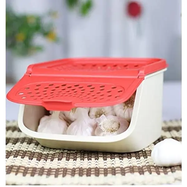 ? The opaque base contributes to the preservation of the onions, garlic, potato, ginger. The cover is designed with the ideal amount and size of holes which leaves the front of the container open for sufficient air circulation needed to store ingredients in the best possible way