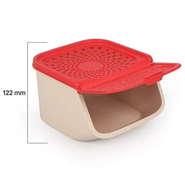 Want to know the best way to store shallots, madras onions, baby potatoes, ginger and garlic? Try the Tupperware Mini Access mates. They are a mess-free and space saving storage solution that encourage air circulation and keep the contents fresh. These containers come in a red and beige colour and sit perfectly on your kitchen counter top for easy access to onion, garlic, ginger while cooking. Due to their unique opening mechanism they can be used even when they are stacked.