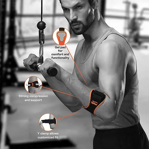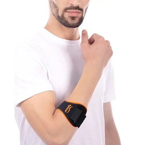 Tynor Tennis/Golfer?s Elbow Support is beautiful forearm band that hold the muscles and the tendons of the forearm during sporting activity. It?s specially designed for sports people playing racket sports, lifting weights or any activity that puts stress on the forearm or has a repetitive hitting or twisting motion. This simple yet stylish band is an absolute necessity to prevent injury of the medial and the lateral tendons of the forearm. The gel pad is designed to give cushioning, absorb vibration due to impact, distribute pressure across tendons and provide comfort. Product is customizable and can be used for both right and left forearm. Length of the tennis/golfer?s elbow support can be customized because of Y clamp hook loop.
