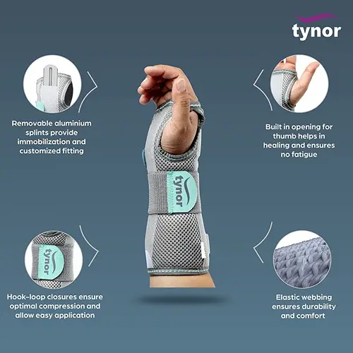 Tynor wrist and forearm splint is designed to immobilize and provide firm but comfortable support to hand and wrist in various orthopedic conditions. It maintains the wrist in the neutral/functional position.