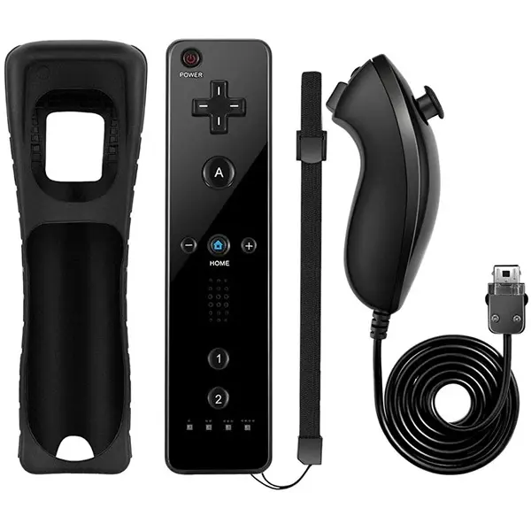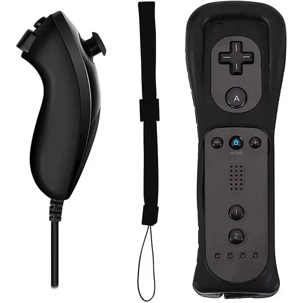 This remote can serve as a sword, ering wheel, paintbrush, golf club, etc., depending on the game. It includes an expansion port to add additional input, such as the Nunchuck. This Nunchuck is compatible with all games that utilize the Nunchuck feature. It contains the same motion-sensing technology as the remote, but also includes an analog stick.