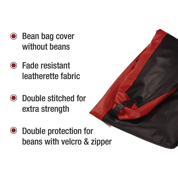 XXL Faux Leather Bean Bag Cover Premium Quality Without Beans (Red and Black)